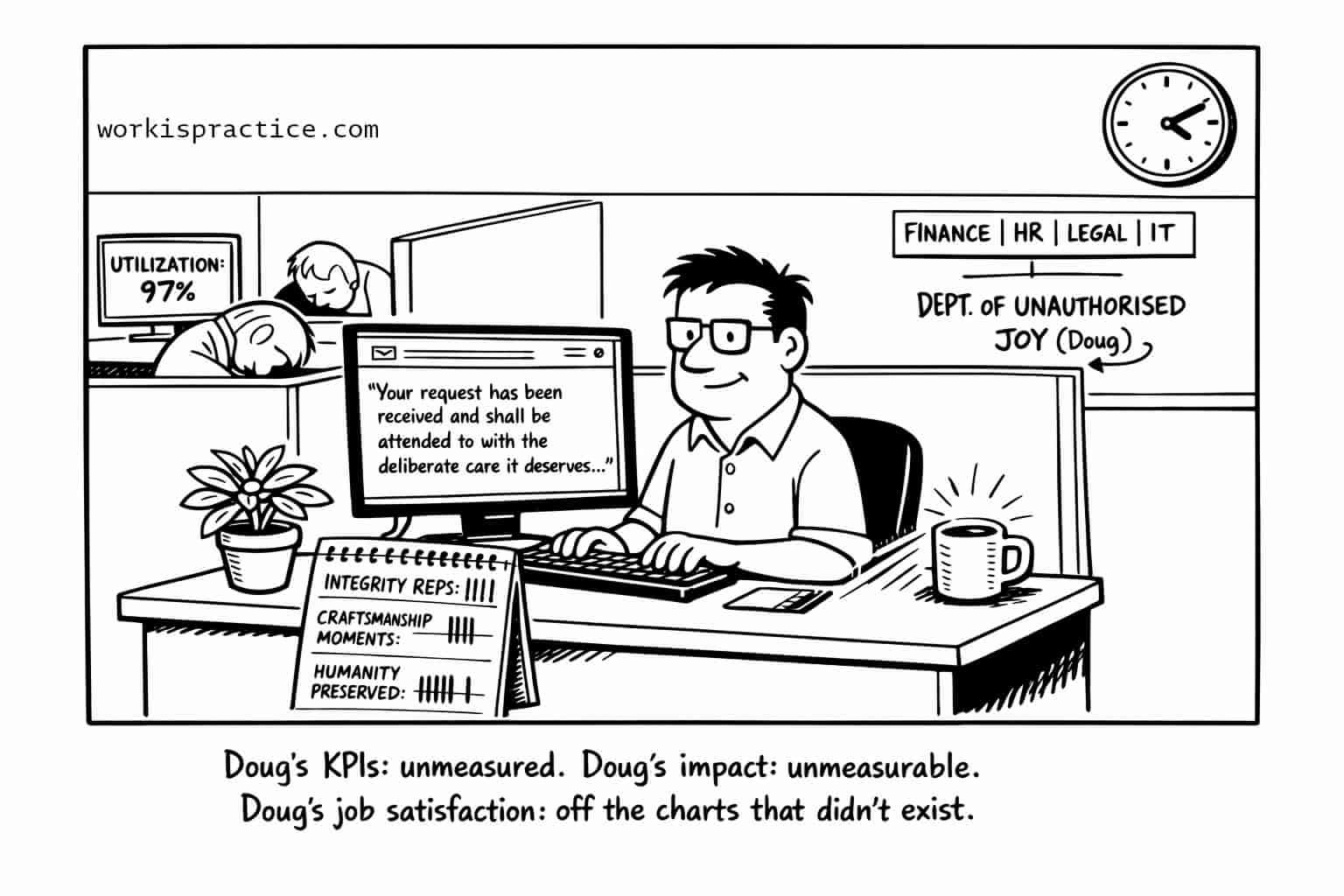 The Department of Unauthorized Joy measures something else:
